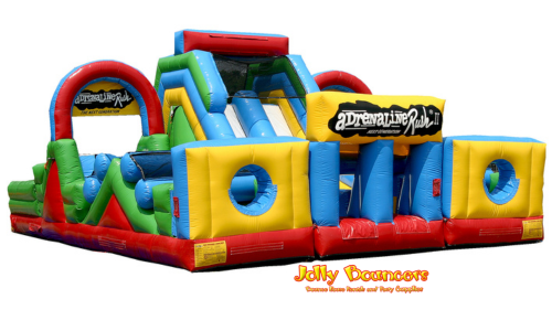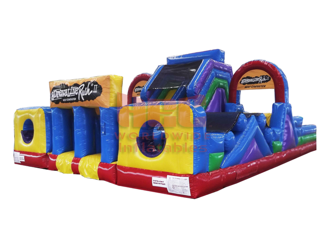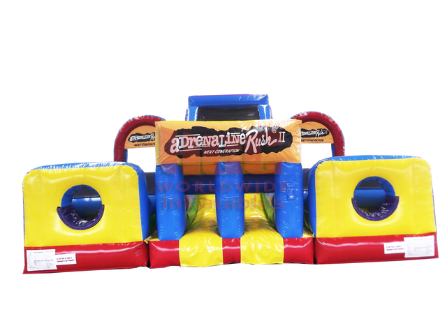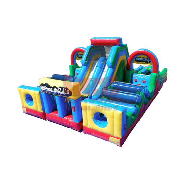 | The Extreme Obstacle brings everything you love in an inflatable attraction together in one brilliant design! The 3 pieces include (1) double lane slide with climb challenge steps and tunnel exits and (2) L-shaped obstacle alleys that include a variety of pop-up, pop-out, log features, rock climb and slide. Each piece can stand alone or be combined to create literally hundreds of obstacle designs! |