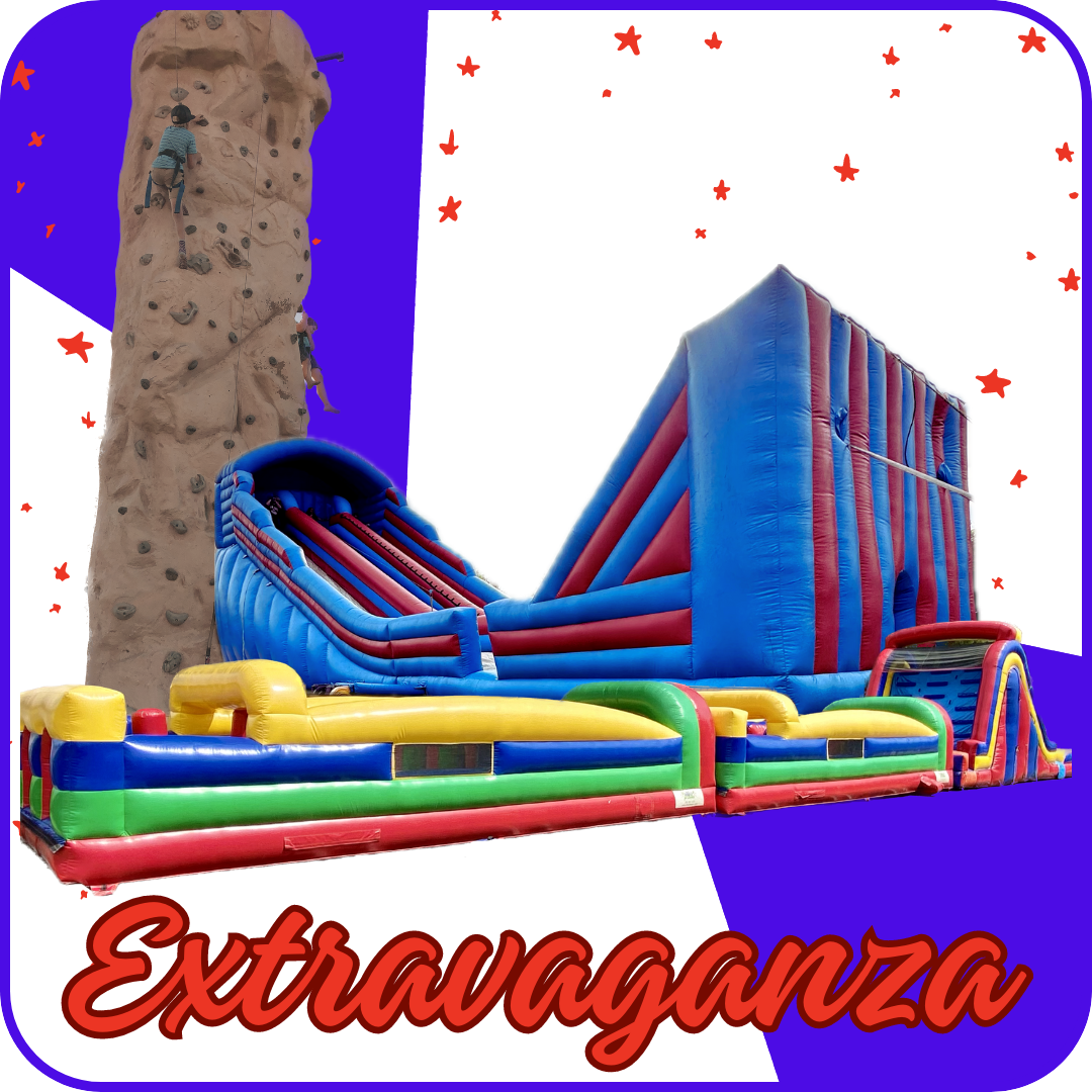 Step right up and experience the thrill of the ultimate carnival extravaganza with our exclusive Extravaganza Package Rental! Our Extravaganza Package is perfect to kick off your next carnival event, with rides that will surely accommodate the high rotation of attendees! Out of this world fun with gigantic equipment that will make your event one to be remembered. For convenience, this package is customizable and includes one item from each of the three listed categories. Due to high demand, ALL packages must be booked over the phone to guarantee availability Packages are subject to availability of each item. For further assistance, feel free to reach out to us at 805-955-9802