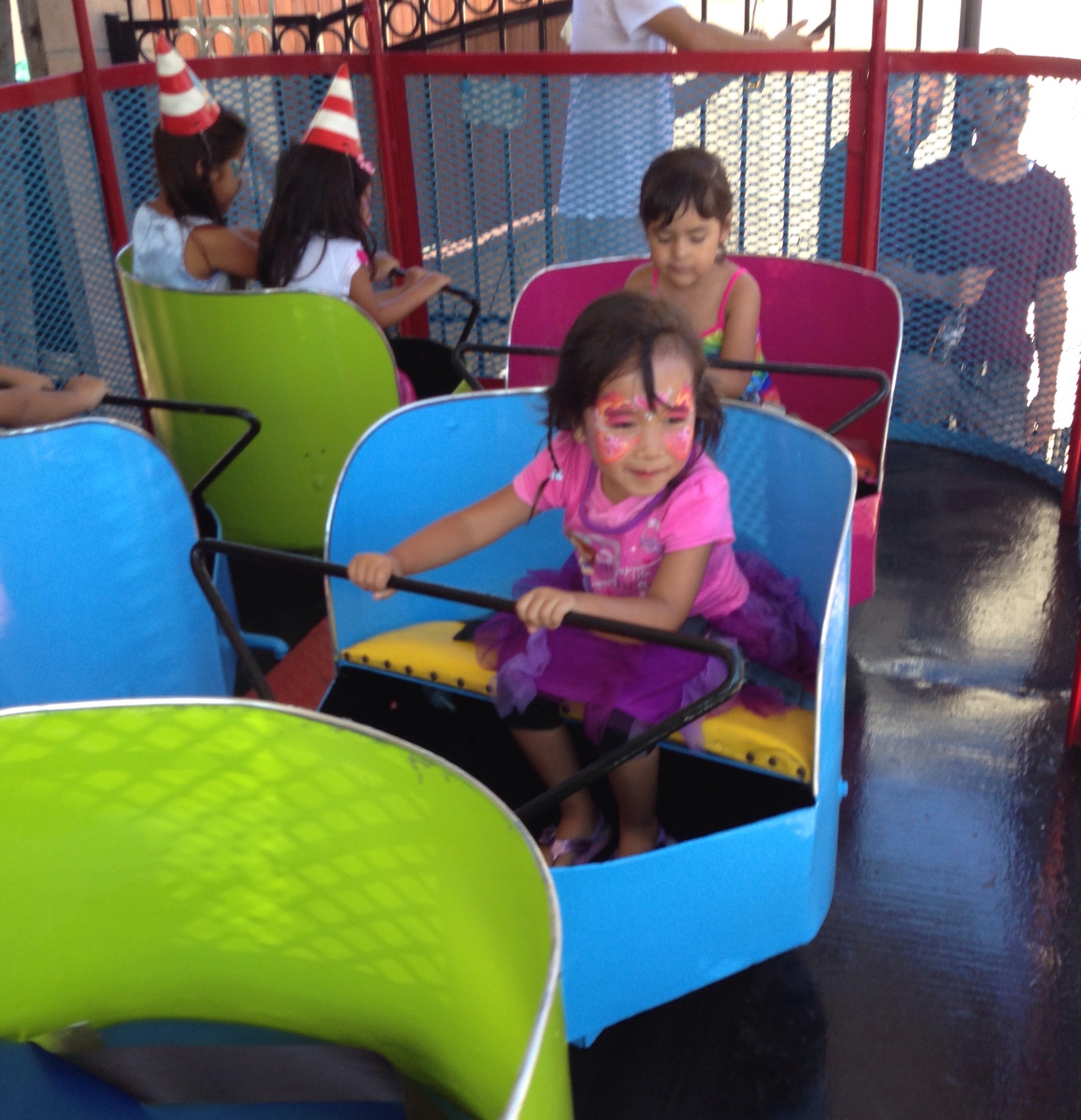 | No party would be complete without a spin on this classic Whip-O-Whirl Ride. Climb aboard for a wild whip of all the thrills of the classic Whipper scaled down to a kid-sized adventure. Riders have to fight the g-force as their cars whip around the track, but not too fast . This oval track allows the cars to race down the long sides of the track and quickly whip around the curves creating an exciting whipping sensation. Our children?s Whip-O-Whirl track is on an enclosed, elevated platform making it safe and attractive. The Whip-O-Whirl holds 6-12 children at a time. Includes one attendant. Ride requirements: Level area and one 30 AMP (120) volt outlet, or generator of equal capacity. |
